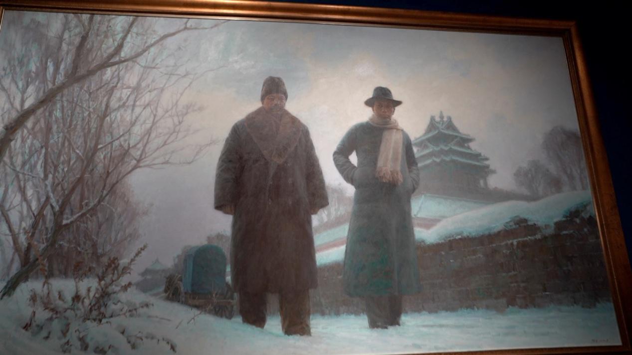 嘉興火車站復古站房油畫《開天辟地》。