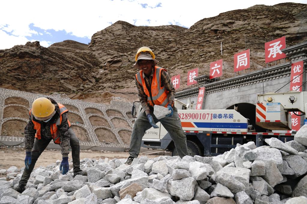 記者近期在位于拉薩市高新區由中鐵六局承建的忠材山隧道施工現場看到,工人們正進行給排水工程、照明安裝、邊坡處理等收尾工序。20歲的旦增索朗來自山南市浪卡子縣多卻鄉,正和工友們忙著攪拌水泥、整理石塊。“我們在這兒干活一天230元,包吃包住,一起來的20多人全是山南老鄉。這幾年西藏工程多,我們打工掙錢的路子越來越廣。”