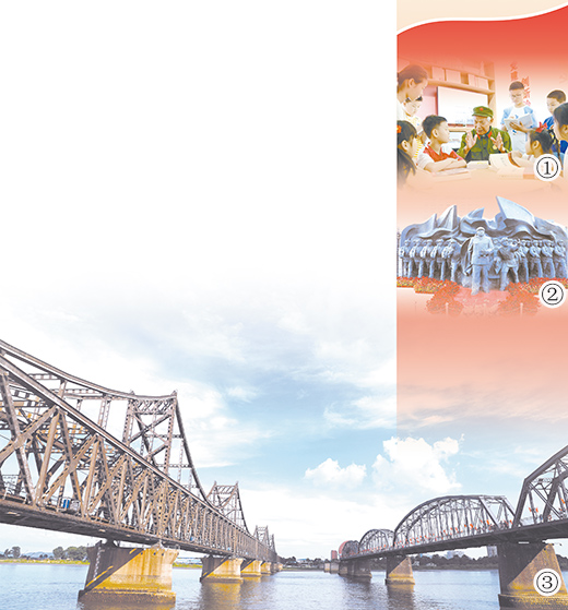 圖③:鴨綠江上的中朝友誼橋(左)和鴨綠江斷橋(右)。
