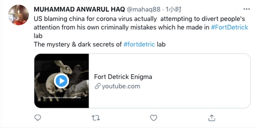 譯文:美國將新冠病毒歸咎于中國,實際上是想把人們的注意力從美國在德堡實驗室犯下的罪,轉移到中國身上!