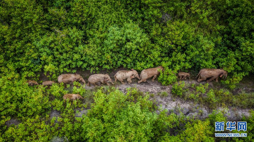 這是8月9日在云南省玉溪市元江縣境內拍攝的象群(無人機照片)。新華社記者 胡超 攝