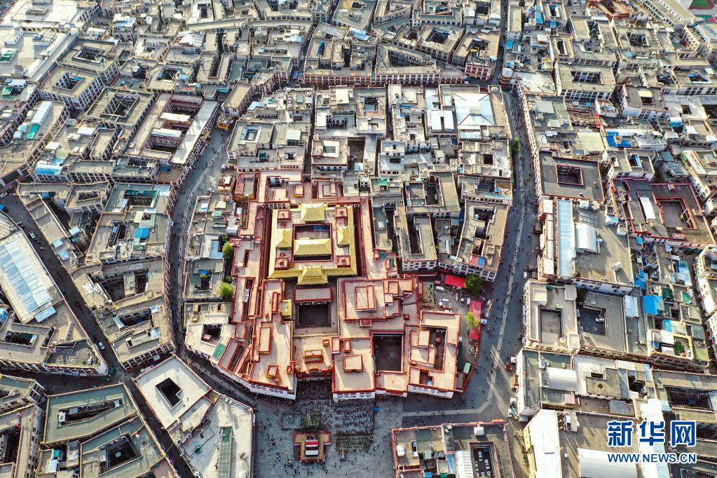 鳥(niǎo)瞰拉薩八廓街(無(wú)人機(jī)照片,2019年8月10日攝)。新華社記者 普布扎西 攝