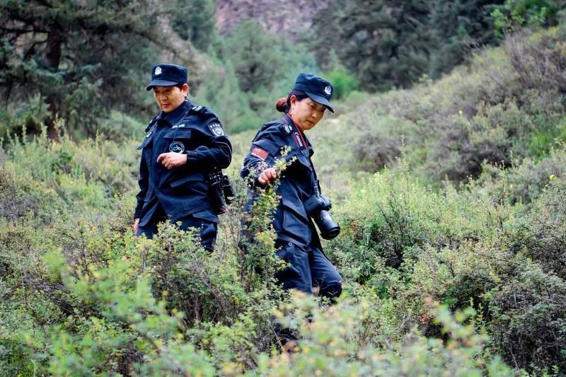 ▲ 8月11日,在甘肅祁連山國家級自然保護區內,生態管護員白擁梅(右)和同事巡護林區 范培珅攝/本刊