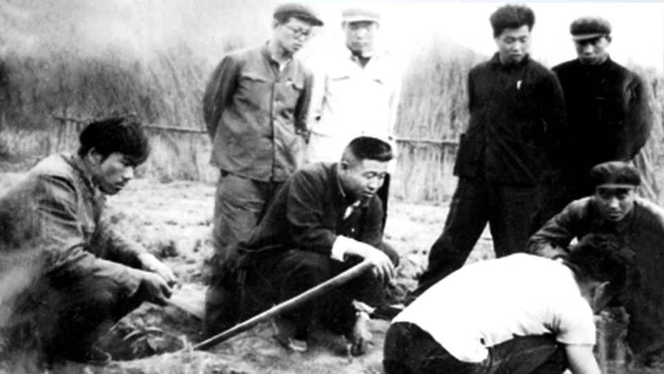 △ 王尚海(左三)和職工一起研究造林技術問題。(資料圖)
