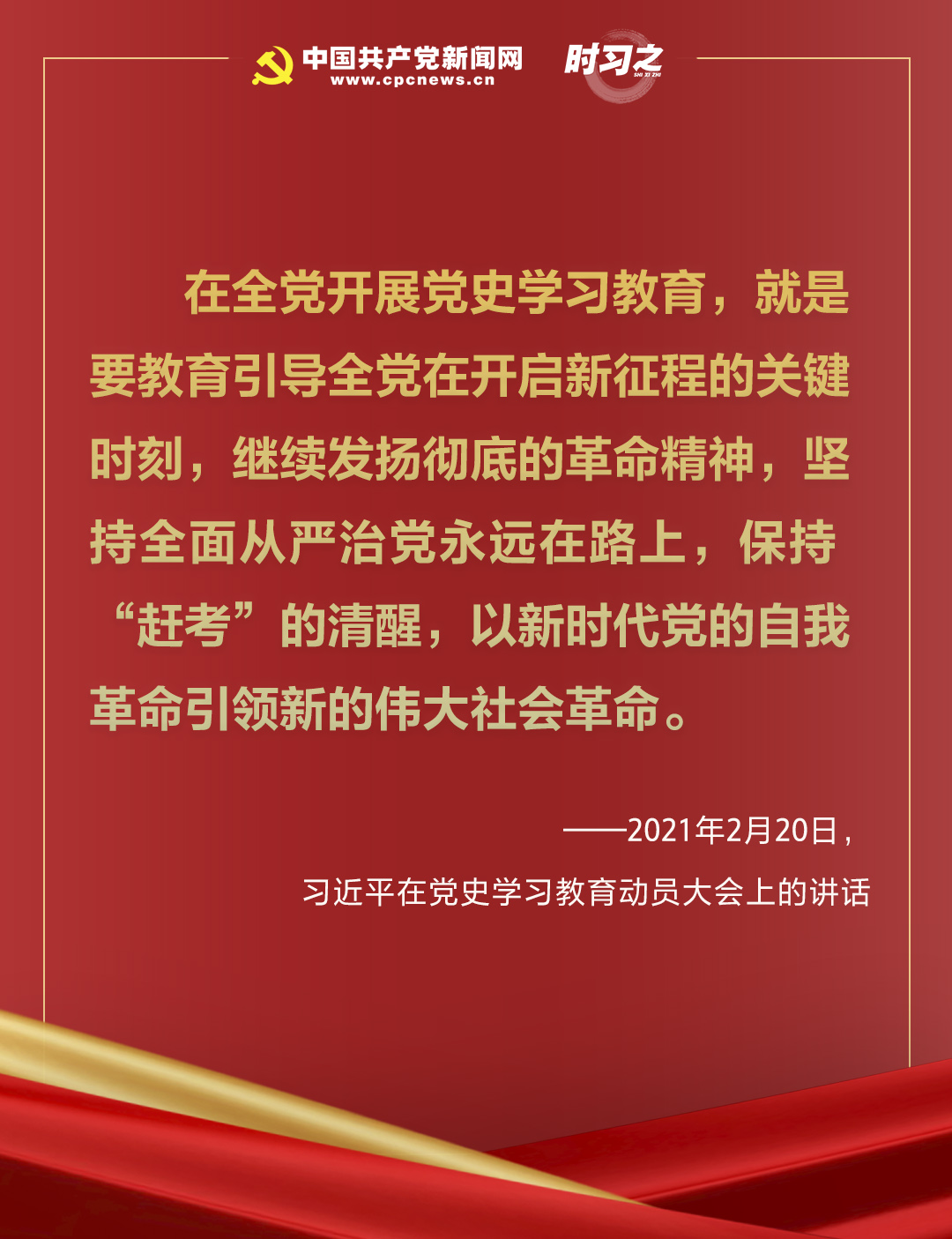 歷史不僅蘊藏著我們“從哪里來”的密碼,也是標定我們“走向何方”的路標。當前,正在全黨集中開展的黨史學習教育,正是為了把黨的歷史學習好、總結好,使我們的黨永遠不變質、我們的紅色江山永遠不變色。