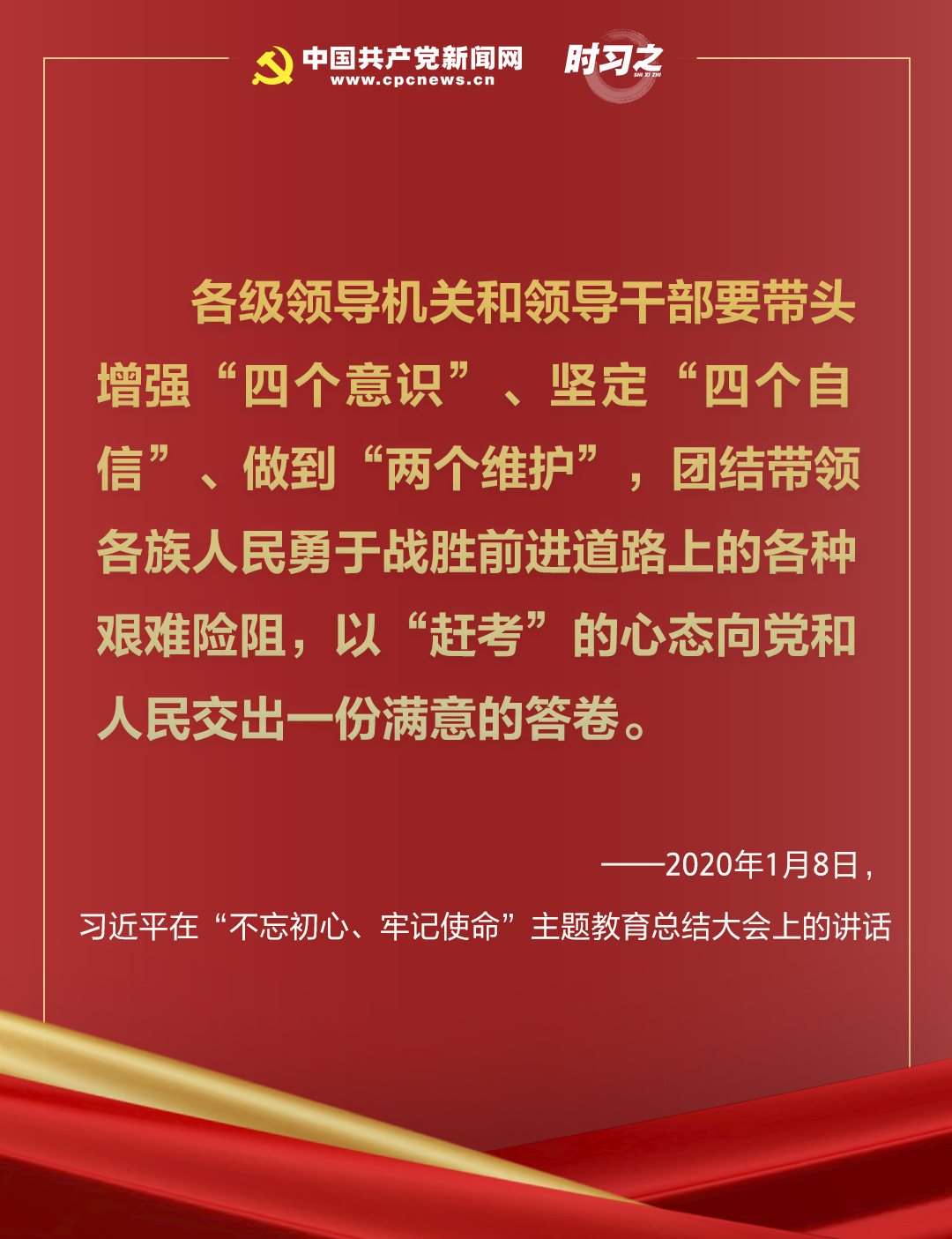 “所有領導干部和全體黨員要繼續把人民對我們黨的‘考試’、把我們黨正在經受和將要經受各種考驗的‘考試’考好,努力交出優異的答卷。”習近平這樣要求。