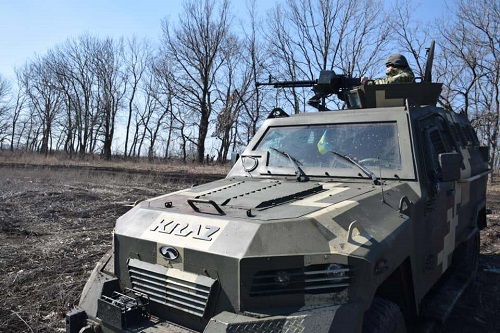 △當地時間2021年4月,烏克蘭東部地區頓巴斯,當地武裝部隊在邊境巡邏。