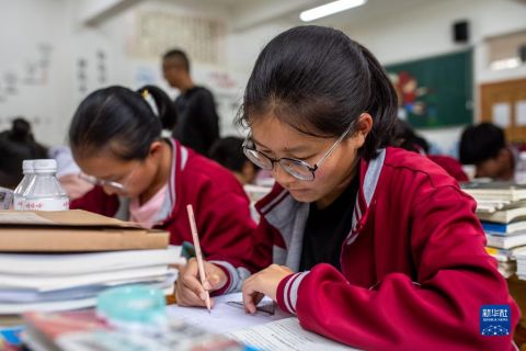 寧蒗寧海民族中學海安4班的學生在教室里上課(8月25日攝)。新華社記者 胡超 攝