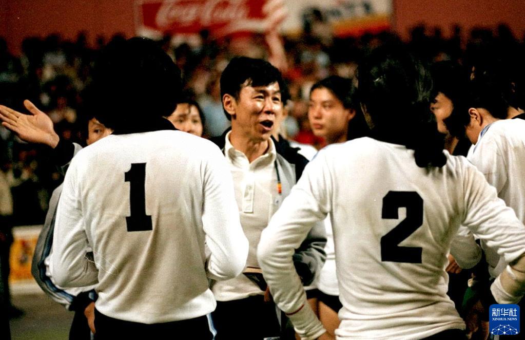 1982年9月20日,袁偉民在第九屆女排世錦賽中指導(dǎo)女排隊(duì)員。新華社發(fā)