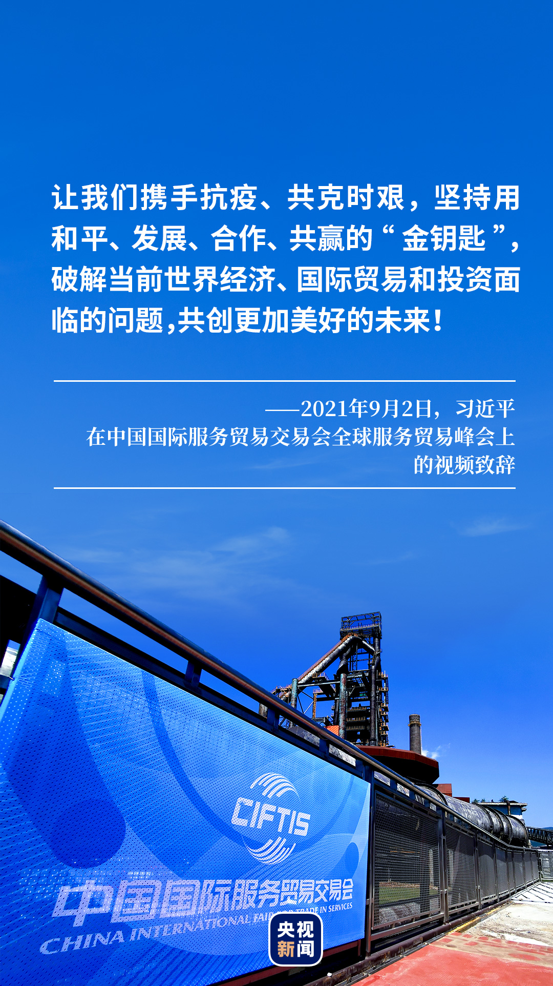 9月2日,在2021年中國國際服務貿易交易會全球服務貿易峰會上發表的視頻致辭中,習近平主席給出了解題的“金鑰匙”——和平、發展、合作、共贏。
