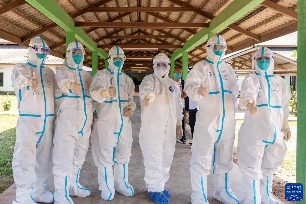 中國抗疫專家組在老撾北部烏多姆賽省準備進入新冠確診患者隔離病房(5月10日攝)。新華社發(農麗春攝)