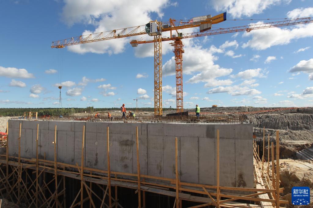 在俄羅斯西北部卡累利阿共和國凱姆河畔,工人在別洛巴羅什水電站施工現場工作(2017年8月15日攝)。別洛巴羅什水電站項目是俄羅斯首個由金磚國家新開發銀行提供融資支持的項目。新華社記者 魯金博 攝