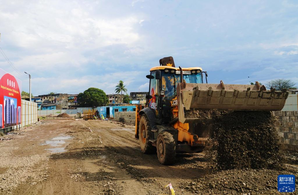 在斯里蘭卡科倫坡,挖掘機在保障房項目現場進行施工(1月14日攝)。由中國企業承建的亞洲基礎設施投資銀行(亞投行)在斯里蘭卡的首個保障房項目2020年11月3日在科倫坡北部郊區破土動工。新華社記者 唐璐 攝