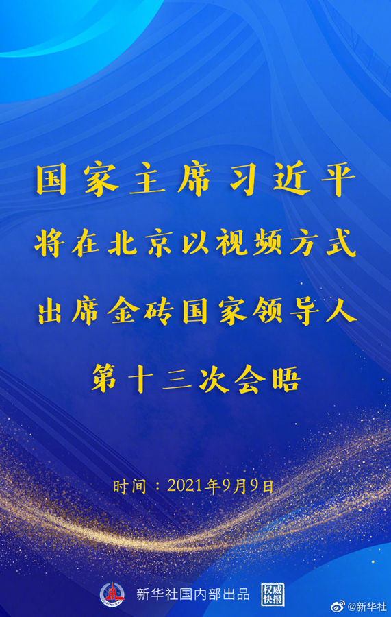 外交部發言人華春瑩9月8日宣布:應印度總理莫迪邀請,國家主席習近平將于9月9日在北京以視頻方式出席金磚國家領導人第十三次會晤。