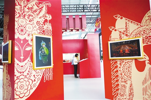 觀眾在服貿會文旅服務專題展區“大戲看北京——京劇文化之旅特展”參觀。特展設置了多個京劇主題體驗區,讓觀眾沉浸式感受京劇文化的魅力。