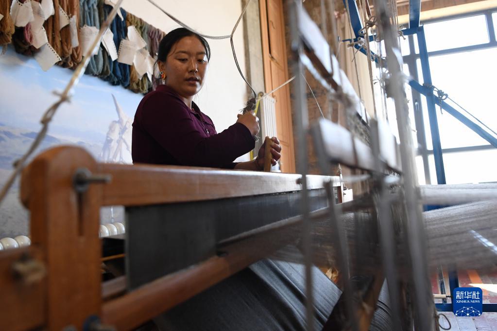 在甘肅省甘南藏族自治州夏河縣阿木去乎鎮加科村,村民們在藏族手工藝品車間里制作藏毯、披肩、藏服、圍巾等手工藝品,在傳統藏族文化的基礎上融入現代元素,受到市場青睞。藏族手工藝品車間幫助村民實現家門口增收致富的同時,也保護傳承了藏族傳統文化,為特色文旅注入活力。