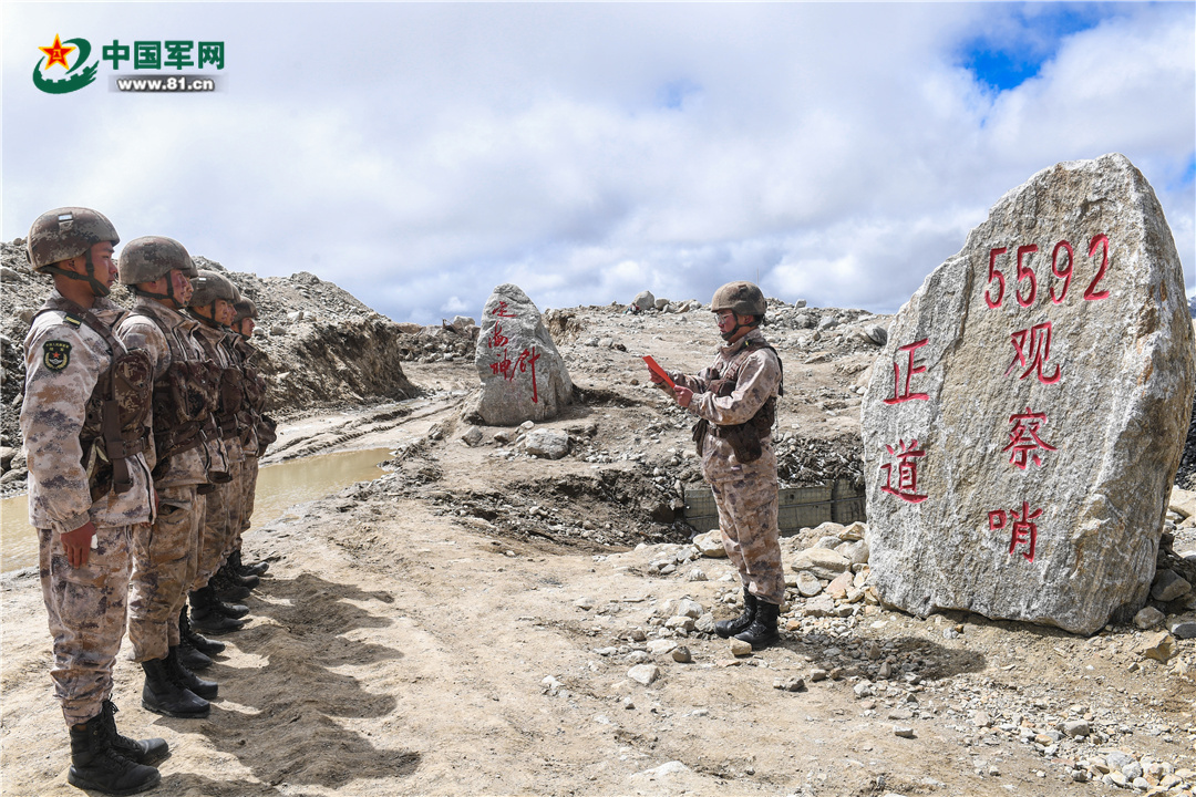 5592觀察哨官兵利用執(zhí)勤間隙學(xué)習(xí)習(xí)主席回信精神。陶云波 攝