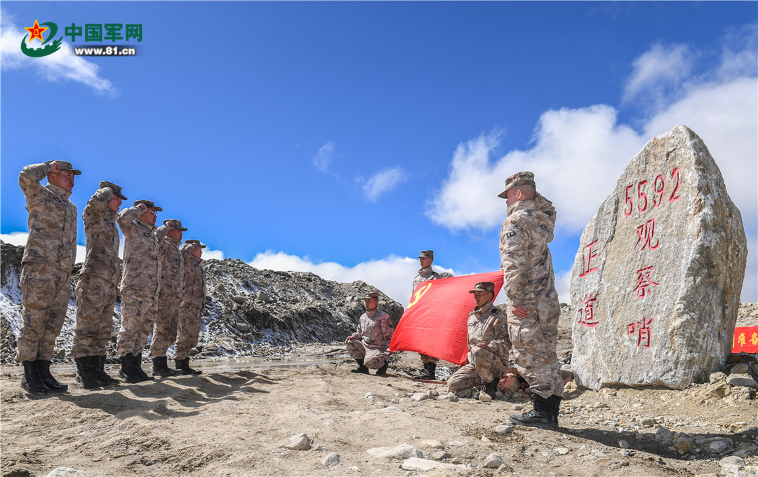 5592觀察哨官兵學(xué)習(xí)完回信后,面對黨旗鄭重承諾,為祖國站好崗、守好邊。陶云波 攝