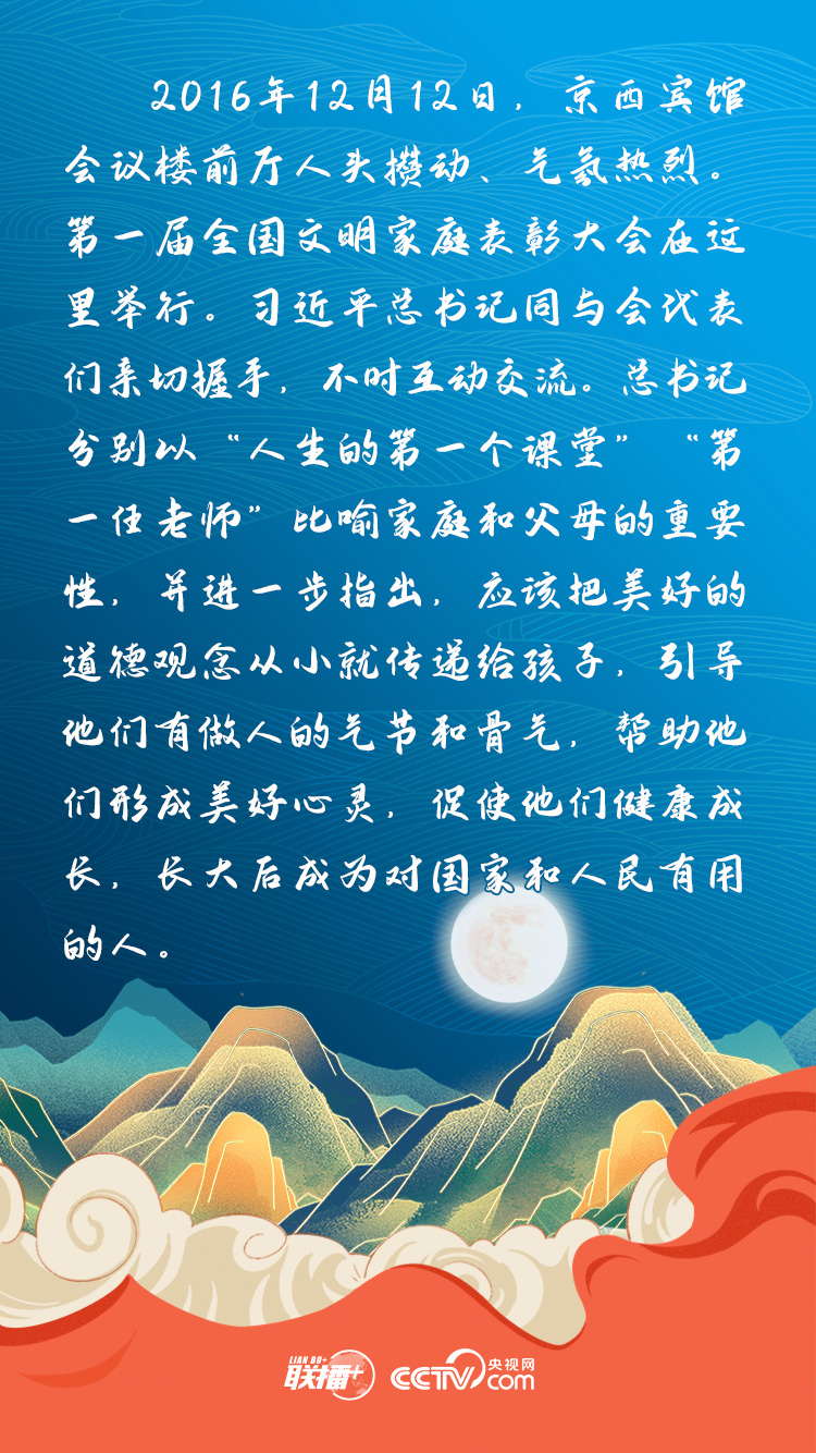 家是最小國,國是千萬家。黨的十八大以來,習近平總書記多次強調要重視家庭建設,提倡把愛家和愛國統一起來,把實現個人夢、家庭夢融入國家夢、民族夢之中。中秋佳節即將到來之際,央視網《聯播+》欄目為您擷取總書記闡釋家國情懷的小故事,與您一起感受總書記心中的家國情。