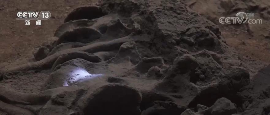 其實現場的化石發掘工作已經持續了近一個月。在較早前,1號發掘現場的部分恐龍骨骼化石已經出土。我們的記者用延時拍攝的方式,記錄下了這具化石骨架的挖掘過程,一起來看一下。
