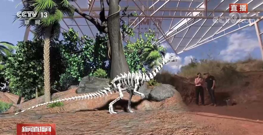 為了能夠更好地呈現科學發現的細節,也為了讓您更能身臨其境感受侏羅紀世界,我們在前方也特別搭建了沉浸式混合現實系統,在科考現場就能實時看到根據骨骼化石復原的恐龍模樣,實現野外互動直播。一眼穿越億萬年。