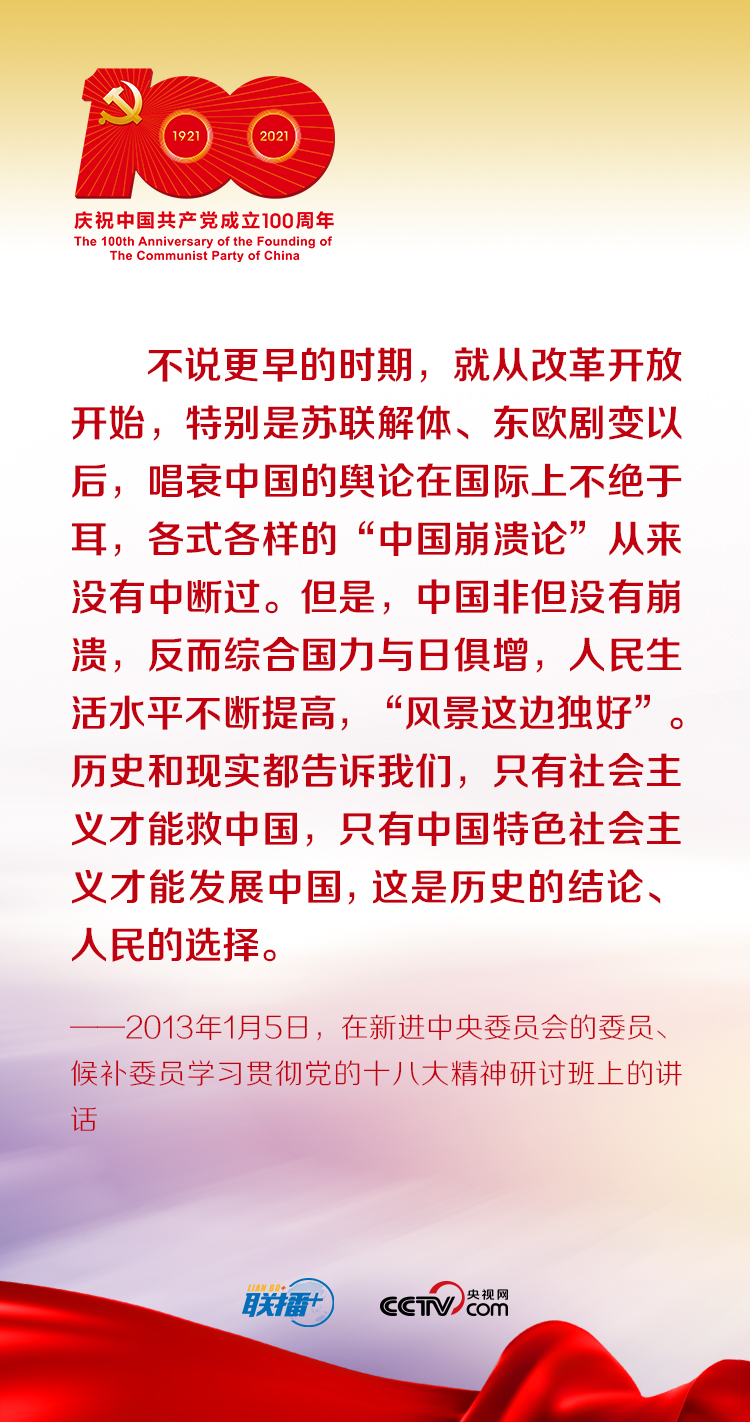 中國(guó)特色社會(huì)主義既堅(jiān)持了科學(xué)社會(huì)主義的基本原則,又根據(jù)時(shí)代條件不斷展現(xiàn)其鮮明的中國(guó)特色。黨的十八大以來,習(xí)近平總書記在不同場(chǎng)合生動(dòng)回答了中國(guó)特色社會(huì)主義為什么好這個(gè)重大問題。央視網(wǎng)《聯(lián)播+》特梳理總書記講話要點(diǎn),與您一起學(xué)習(xí)領(lǐng)悟走中國(guó)特色社會(huì)主義道路的正確性,堅(jiān)定走中國(guó)特色社會(huì)主義道路的信心與決心。