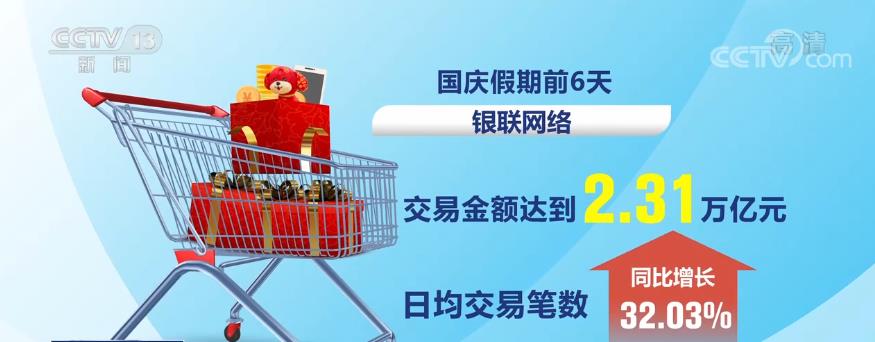 數據顯示,國慶假期前6天,銀聯網絡的交易金額達到2.31萬億元,日均交易筆數同比增長32.03%。網聯平臺共處理網絡支付交易120.19億筆,金額6.46萬億元。日均交易筆數和金額同比漲幅均超過20%。