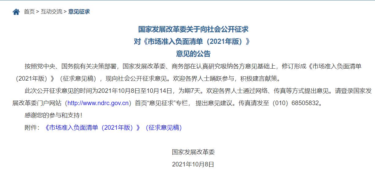 附:《市場準入負面清單(2021年版)》(征求意見稿)