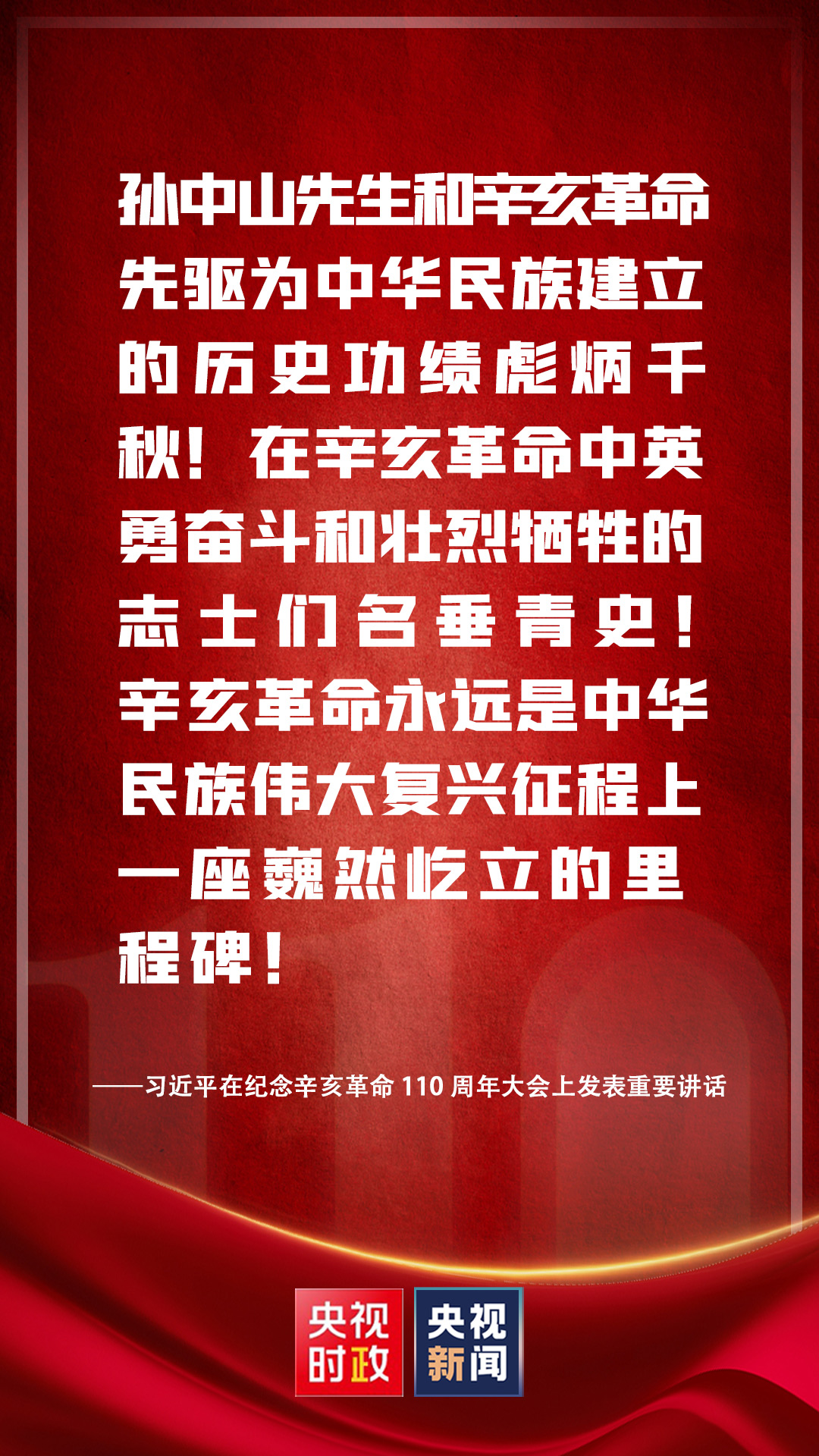 紀(jì)念辛亥革命110周年大會于10月9日上午10時在北京人民大會堂隆重舉行。中共中央總書記、國家主席、中央軍委主席習(xí)近平出席大會并發(fā)表重要講話。