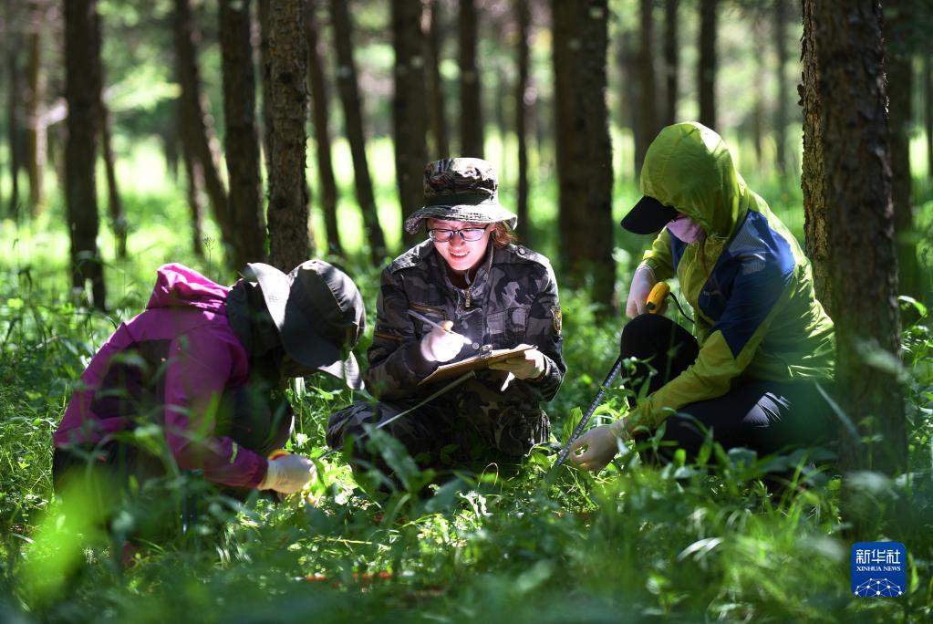 工作人員在河北塞罕壩機械林場采集數據(2017年7月12日攝)。新華社記者 王曉 攝