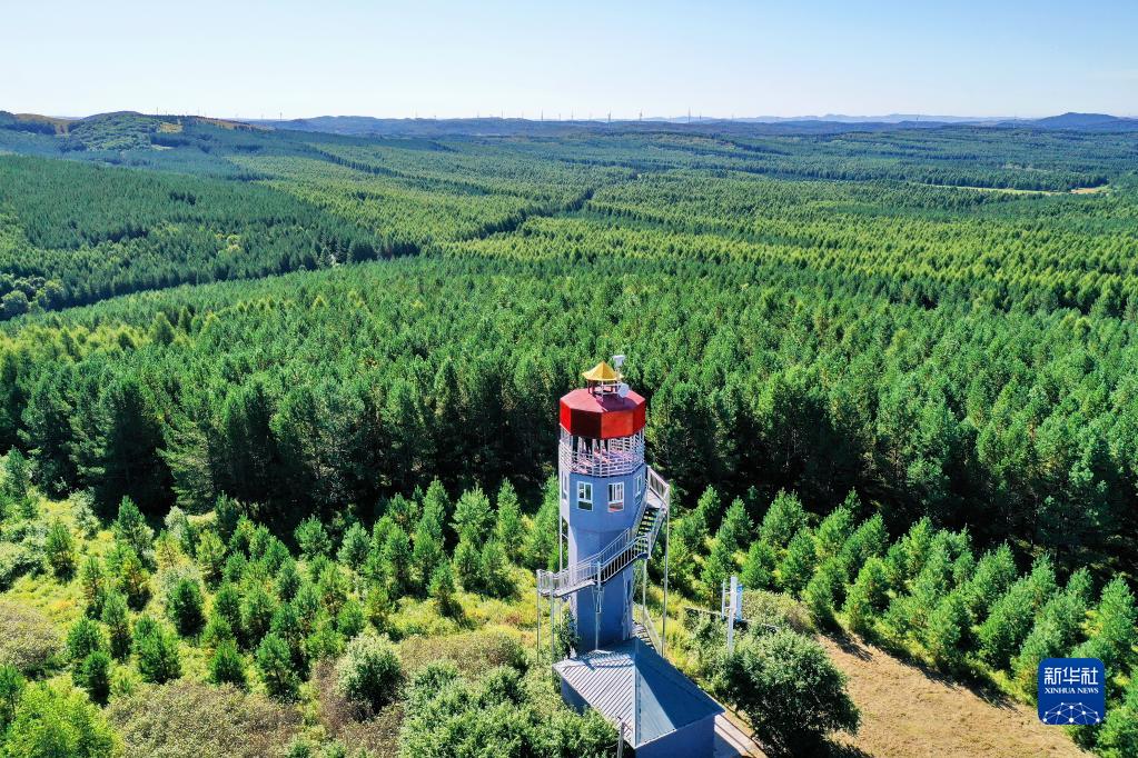 河北塞罕壩機械林場內的望海樓(8月23日攝,無人機照片)。新華社記者 牟宇 攝