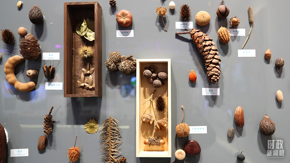 △會展中心,云南生物多樣性保護實踐與成果展展廳的種子墻。(圖/視覺中國)