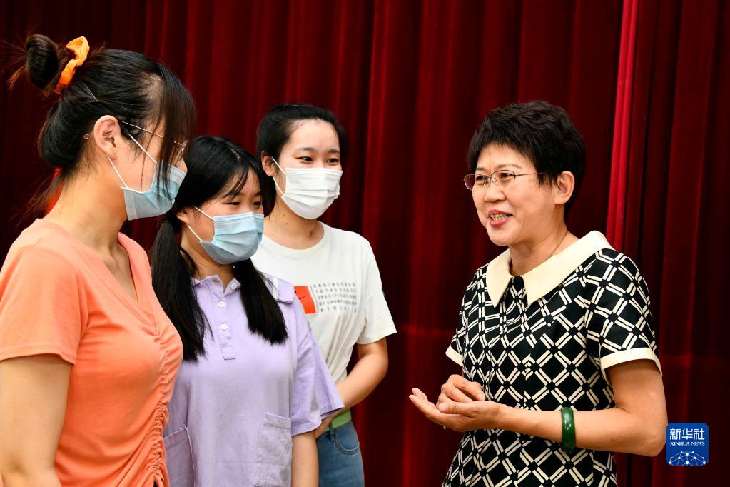 在山東濰坊學(xué)院法學(xué)院,全國(guó)人大代表高明芹(右一)在宣講民法典相關(guān)內(nèi)容(2020年6月16日攝)。新華社記者 郭緒雷 攝