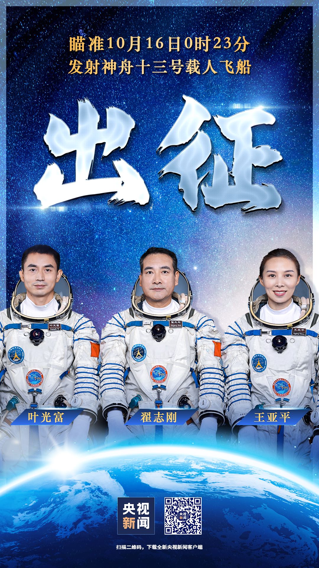 神舟十三號載人飛行任務航天員乘組出征儀式,在酒泉衛星發射中心問天閣廣場舉行。