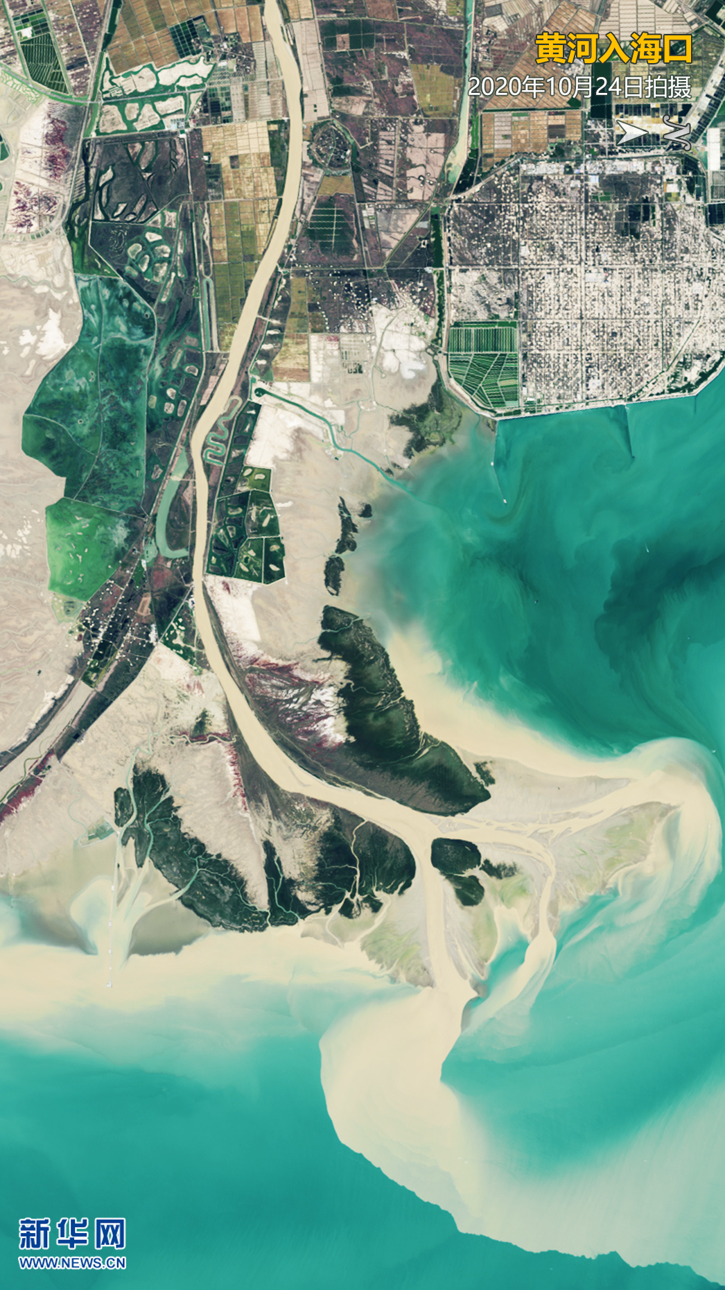 ▲衛(wèi)星視角下的黃河入海口。