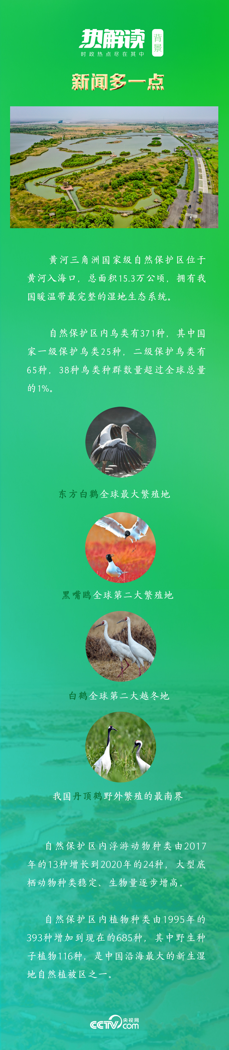 今日的黃河三角洲自然保護區生物多樣性更加豐富,野生動物、植物分別達到1630種、685種。全球首批“國際濕地城市”的稱號,是對東營市保護和修復黃河流域生態環境的褒獎。