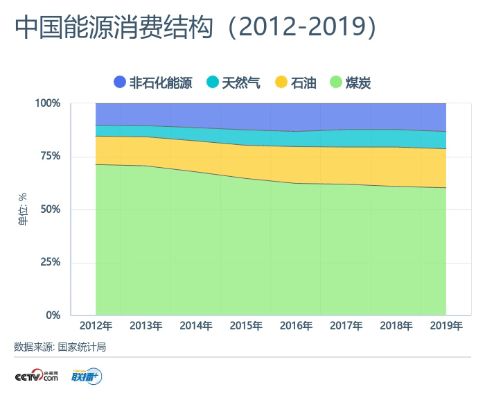 數據顯示,2019年我國煤炭消費占能源消費總量比重為57.7%,比2012年降低10.8個百分點;天然氣、水電、核電、風電等清潔能源消費量占能源消費總量比重為23.4%,比2012年提高8.9個百分點。