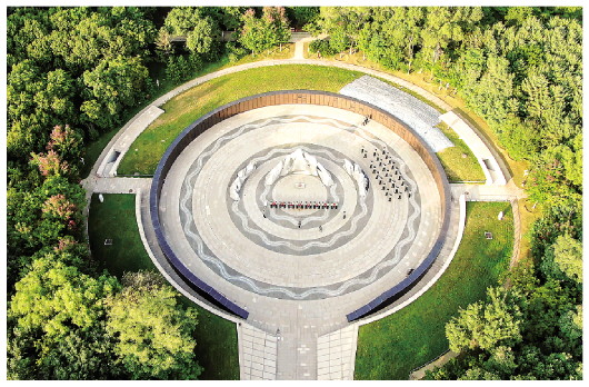 2020年10月12日航拍的沈陽抗美援朝烈士陵園下沉式紀念廣場。新華社發