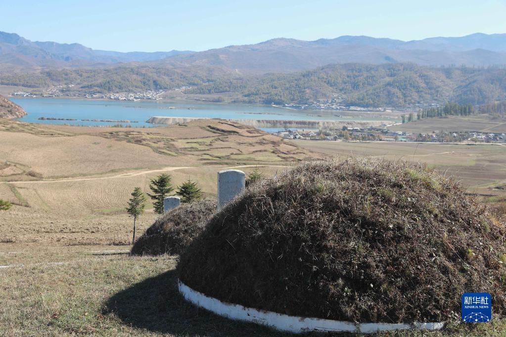 這是10月23日在朝鮮咸鏡南道西北部拍攝的長(zhǎng)津邑中國(guó)人民志愿軍烈士合葬墓地。山坡下的湖即為朝鮮北部最大的湖泊長(zhǎng)津湖。新華社記者 江亞平 攝