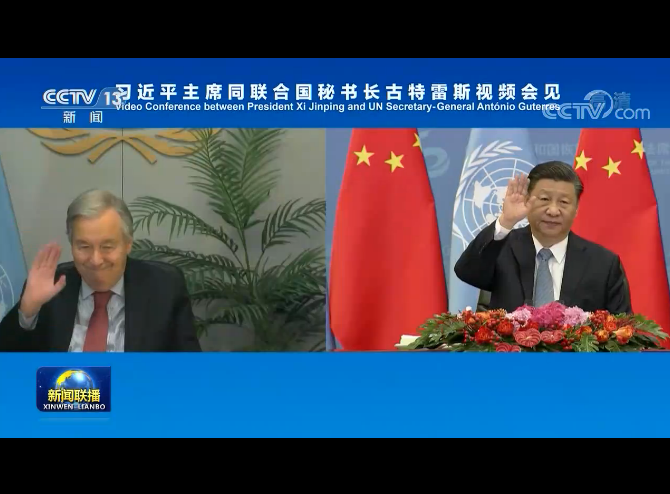 國家主席習近平25日上午在北京人民大會堂以視頻方式會見聯合國秘書長古特雷斯。