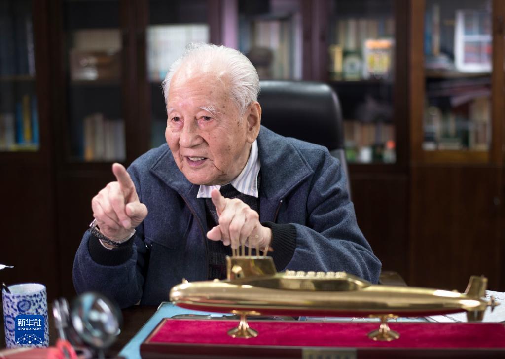2016年12月20日,黃旭華在辦公室內與同事交談。新華社記者 熊琦 攝