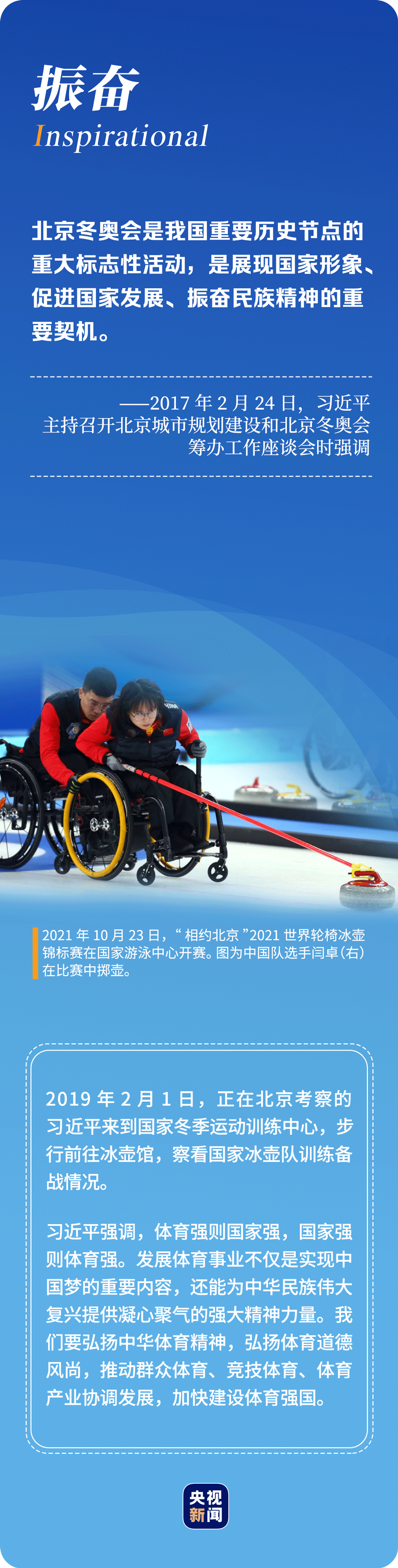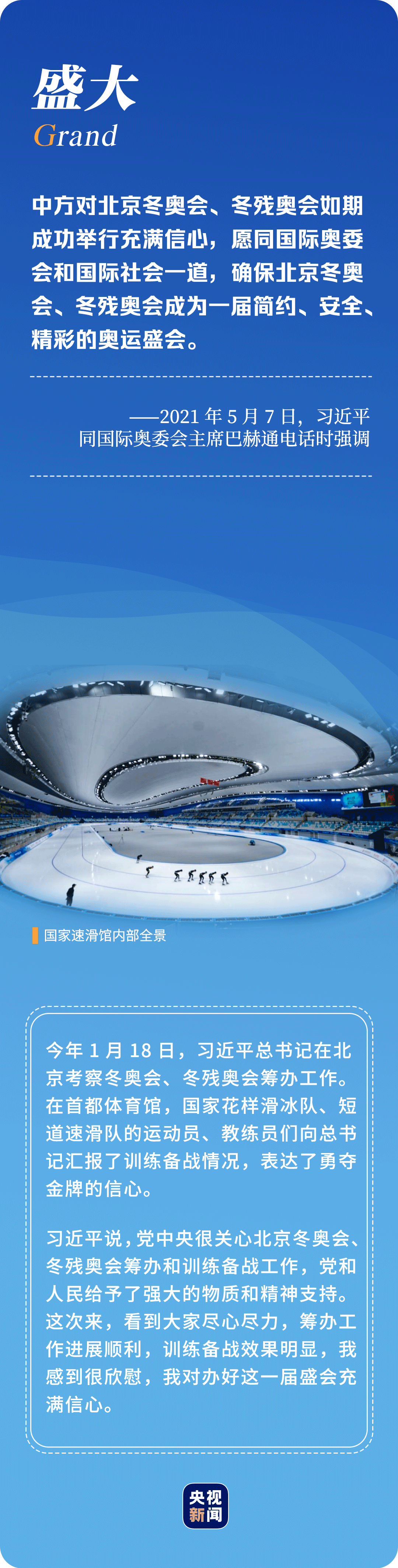 “辦好北京冬奧會、冬殘奧會是黨和國家的一件大事,是我們對國際社會的莊嚴承諾,做好北京冬奧會、冬殘奧會籌辦工作使命光榮、意義重大。”6年多來,習近平總書記始終惦記著冬奧會籌辦進展,多次實地考察、主持召開重要會議部署推進冬奧籌辦工作。