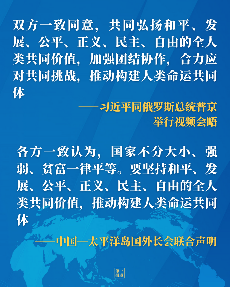 從同普京總統(tǒng)視頻會晤、同菲律賓總統(tǒng)杜特爾特通電話,到第七十屆聯(lián)合國大會一般性辯論、世界經(jīng)濟論壇“達沃斯議程”對話會、中國共產(chǎn)黨與世界政黨領導人峰會等多邊場合,習近平主席多次闡述全人類共同價值的深刻內(nèi)涵,凝聚中外共識。