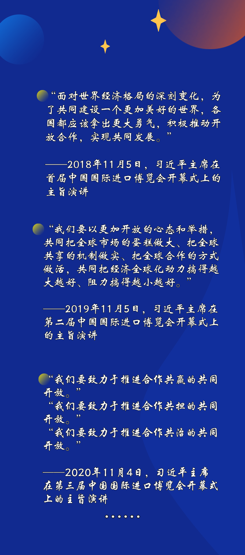 在前三屆進博會開幕式上的主旨演講中,“合作”“共贏”是不變的高頻詞——