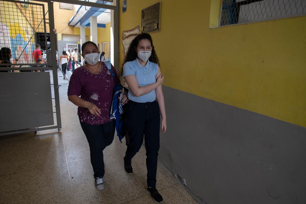 11月4日,在位于委內瑞拉首都市中心的“何塞·安潔爾·阿拉莫”中學,一名學生們接種完疫苗后離開。薩爾戈多攝