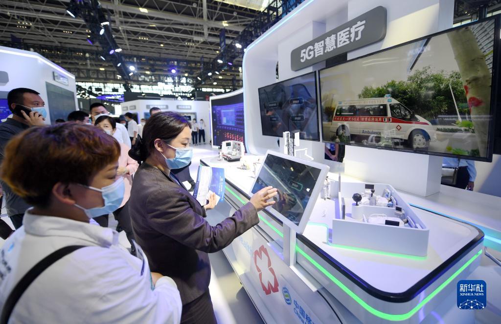 9月7日,參觀者在2021中國國際數字經濟博覽會參觀5G智慧醫(yī)療展臺。新華社記者 王曉 攝