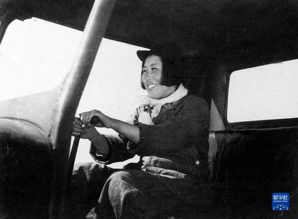 這是梁軍在駕駛拖拉機(jī)(1950年攝)。新華社發(fā)