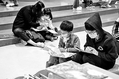 山西省太原市,家長和小朋友在圖書館內看書。新華社發