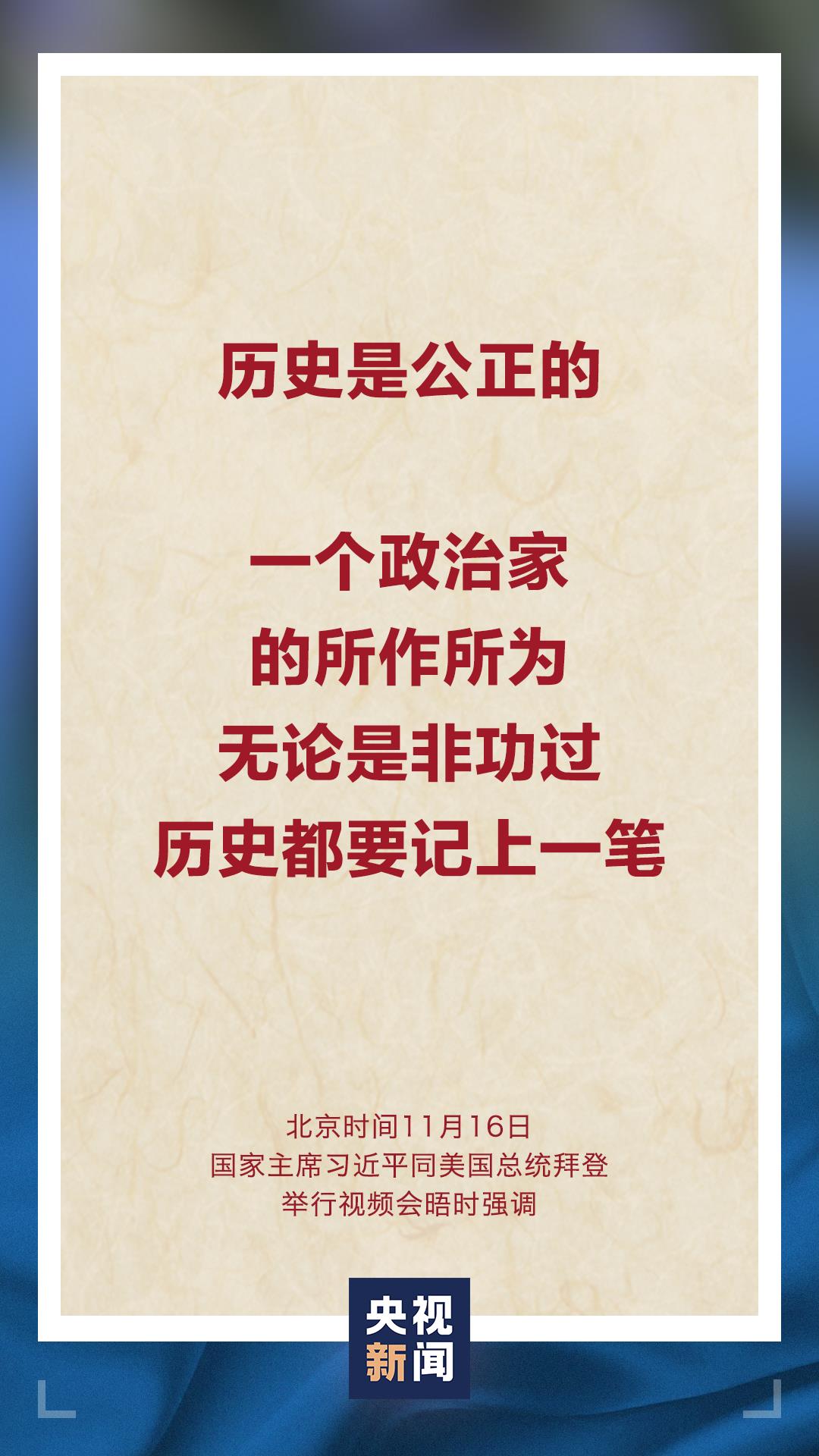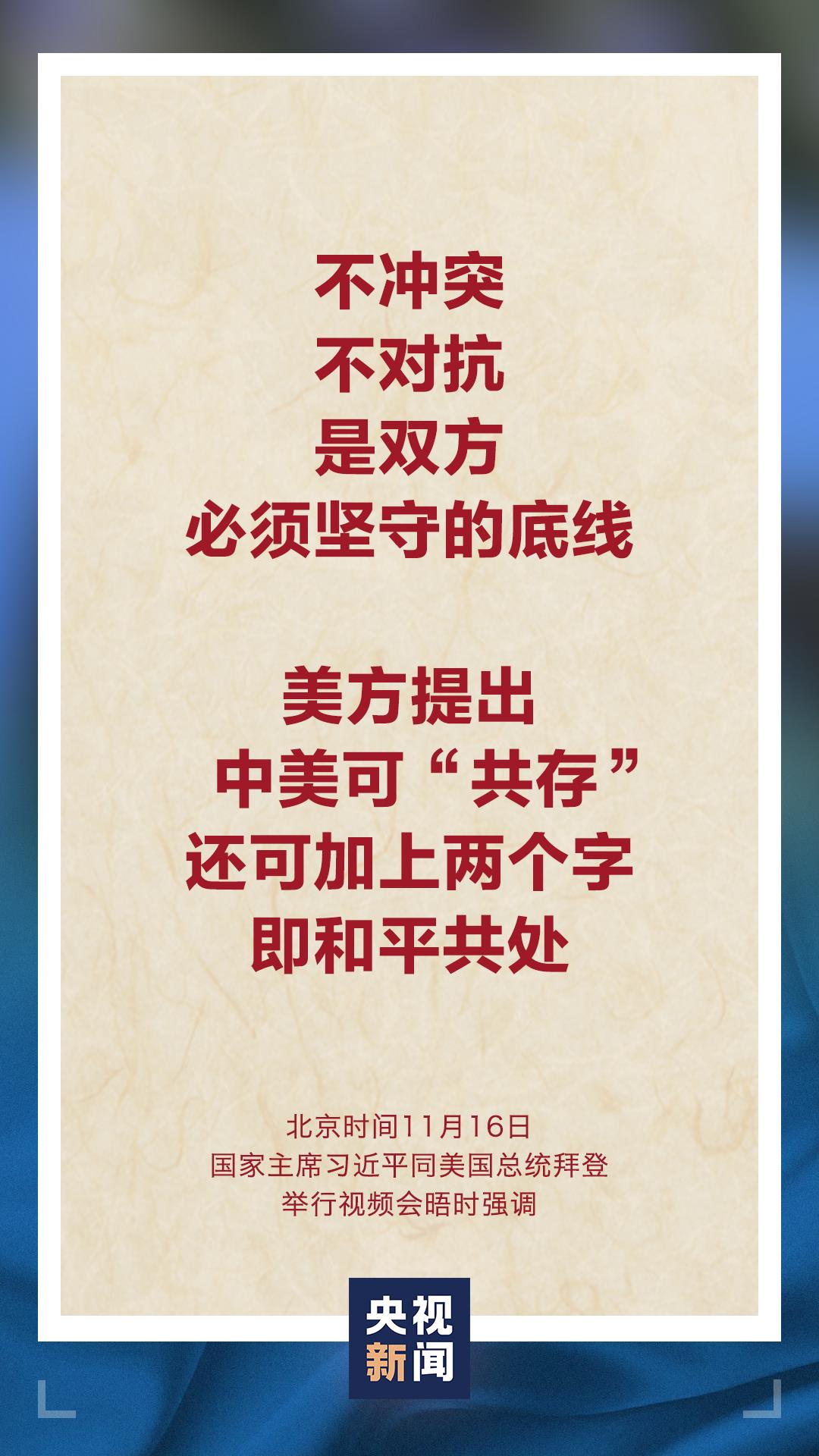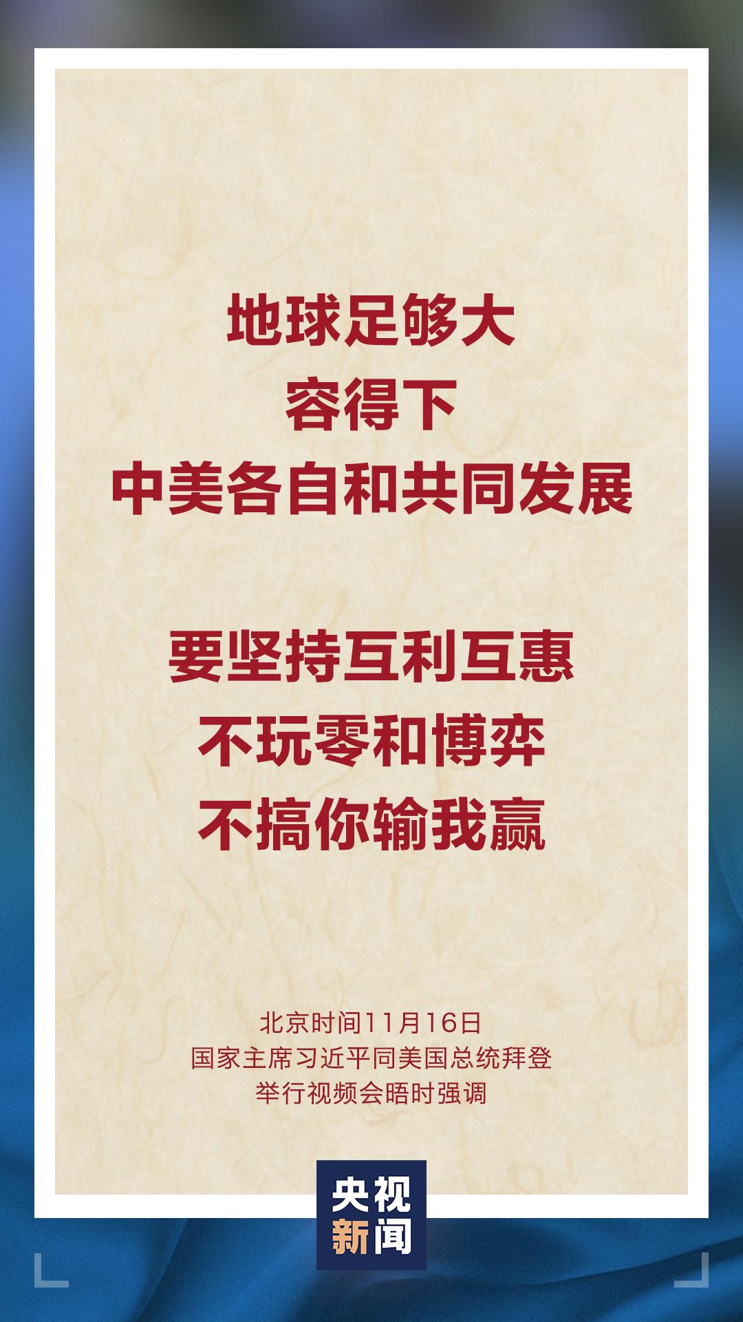 11月16日上午,國家主席習近平同美國總統拜登舉行視頻會晤。雙方就事關中美關系發展的戰略性、全局性、根本性問題以及共同關心的重要問題進行了充分、深入的溝通和交流。