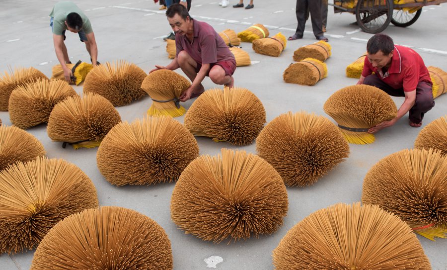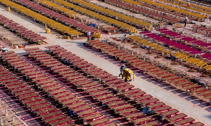 歲末,閩南及東南亞地區進入用香旺季,趁著連日來的大晴天,泉州永春縣達埔鎮各香廠的工人們正忙著曬香,迎接銷售旺季到來。